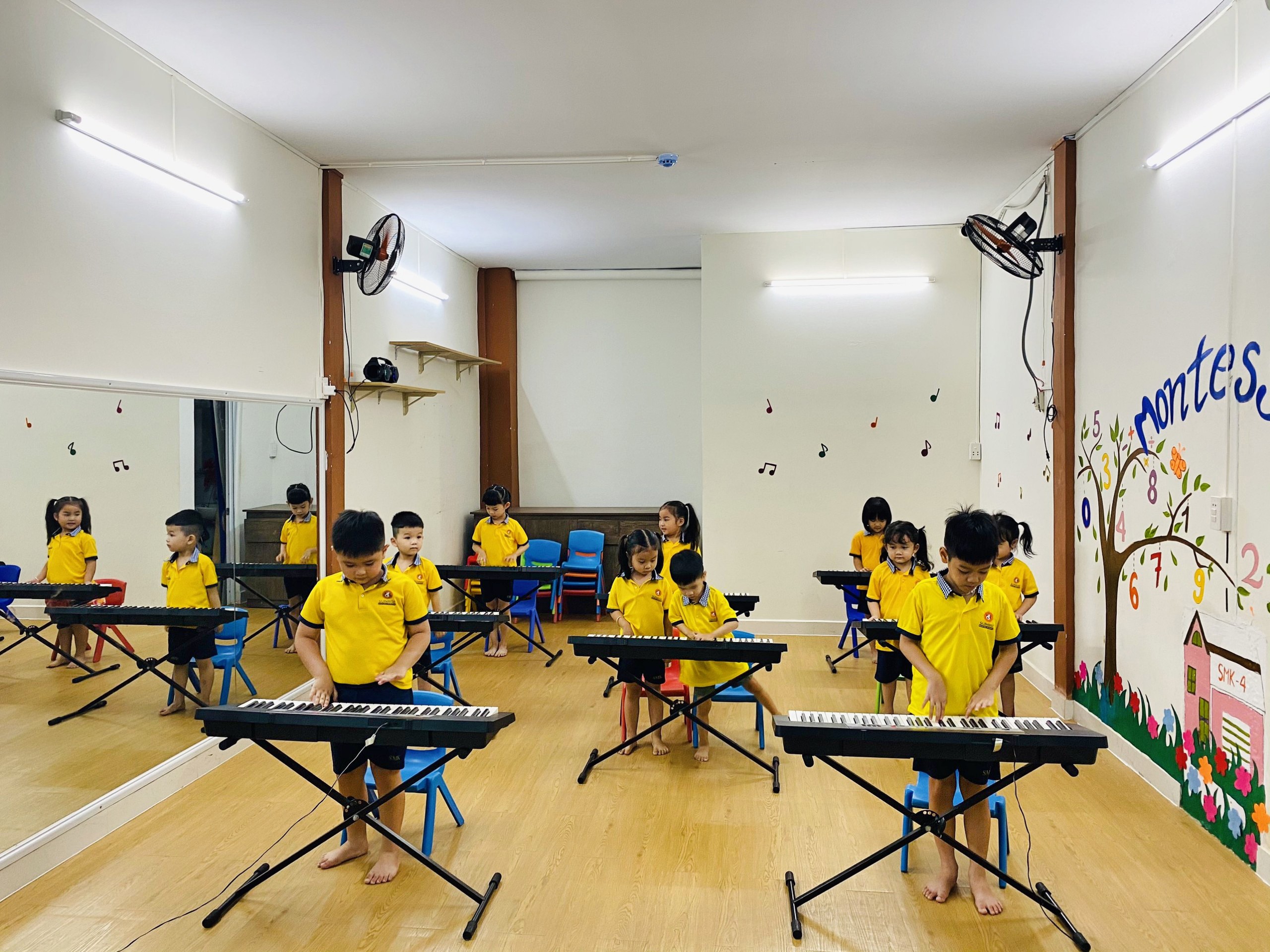 Đến với hệ thống Sunrise Bilingual Kindergarten, bên cạnh trang bị nền tảng vững chắc về tri thức, bé còn được tham gia các môn học năng khiếu. Cụ thể như MC, Thanh nhạc, Dance, Aerobic,… Thông qua đó con có được những giây phút thư giãn, hình thành sự tự tin, năng động và hoạt bát hơn. Những tiết Sunrise Talent – Tài năng của trẻn mầm non đóng vai trò quan trọng trên hành trình hình thành phẩm chất và hoàn thiện vốn kiến thức. Mầm non song ngữ Sunrise luôn tạo điều kiện tốt nhất cho con phát triển toàn diện và bộc lộ hết những tài năng nổi trội của bản thân.