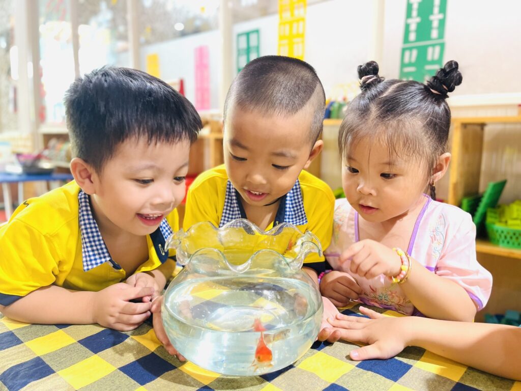 Nghe đến hoạt động thực hành đánh bắt cá là các bé vô cùng háo hức và thích thú. Con được tận mắt nhìn thấy những chú cá nhỏ xinh xắn, được tận tay chạm vào và cảm nhận. Các bé mầm non song ngữ Sunrise có những giây phút vui chơi với cá hết sức chân thực. Điều này mang đến những góc nhìn mới mẻ, kích thích tính sáng tạo trong học tập. Những trải nghiệm tự nhiên và thực tế không chỉ mang đến cho con niềm vui mà còn khuyến khích con hiểu và ghi nhớ bài rất nhanh.