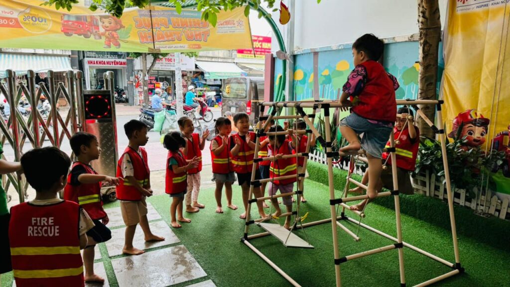 Hoạt động leo lên thang và xuống thang – kỹ năng thoát hiểm khi có sự cố hỏa hoạn cho trẻ